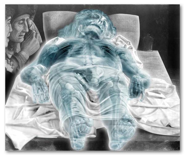 Renato Meneghetti indagine x-ray su "Il Cristo Morto" del Mantegna 2011, alcool su tela, cm 68 x 81 Venezia, Padiglione Italia - Arsenale |